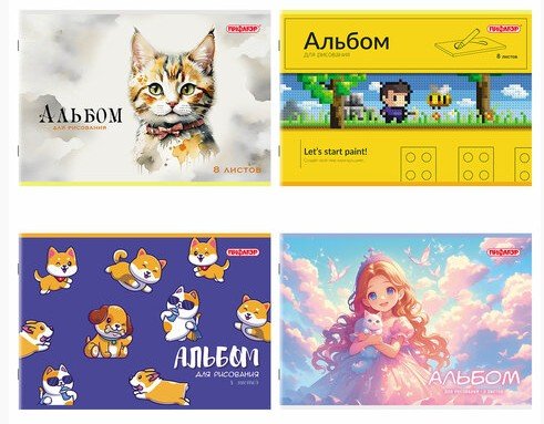 Альбом д/рис. А4 8л., скоба, обложка офсет, ПИФАГОР, 203х288мм, МИКС, 107099