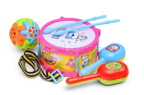 Набор музыкальных инструментов (барабан, 2 маракаса, погремушка) в пакете 5898-2
