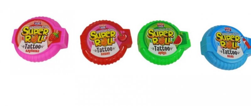 Жевательная резинка "Супер ролл" с тату ассорти 12г (24шт) 4627112757651