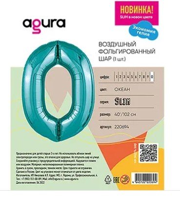 Шар фольгированный "Цифра 0" 40/100см Бирюзовый 1207-5031