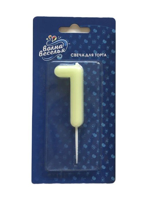 Свеча Цифра, 1 Люминесцентная, Флуор, 3,5*8,5 см, 1 шт. с держат. 802681