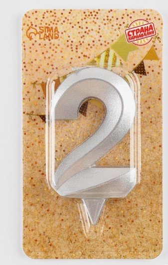 Свеча в торт «Грань», цифра 2, серебряный металлик, 6.5 см 5928496