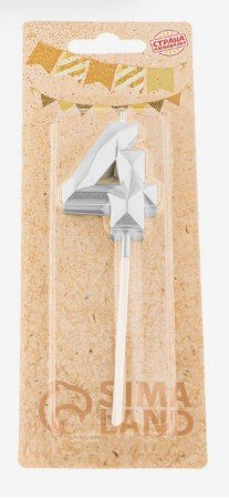 Свеча в торт на шпажке «Алмаз», цифра 4, серебряная, 5×2.6 см 9338105